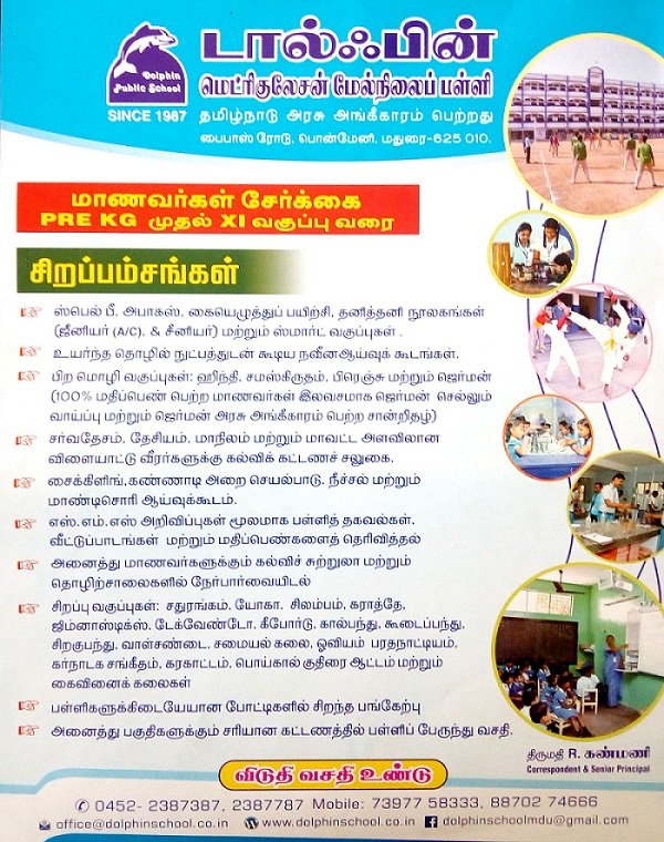 Football, Chess, Silambam, Karate, Swimming, Shuttlecock, Keyboard, Cookery, Gymnastics, Cycling, Art & Craft, Traditional Dance, Folk Dance, etc.,.