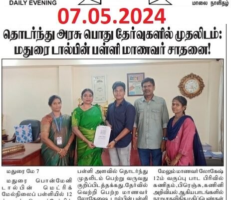 Std 12 HSC & 10 SSLC board exam results – 2024 in News Papers of 12. 05. 2024. Dolphin Elite Cbse school. Admissions Open Pre KG – Gr 11
